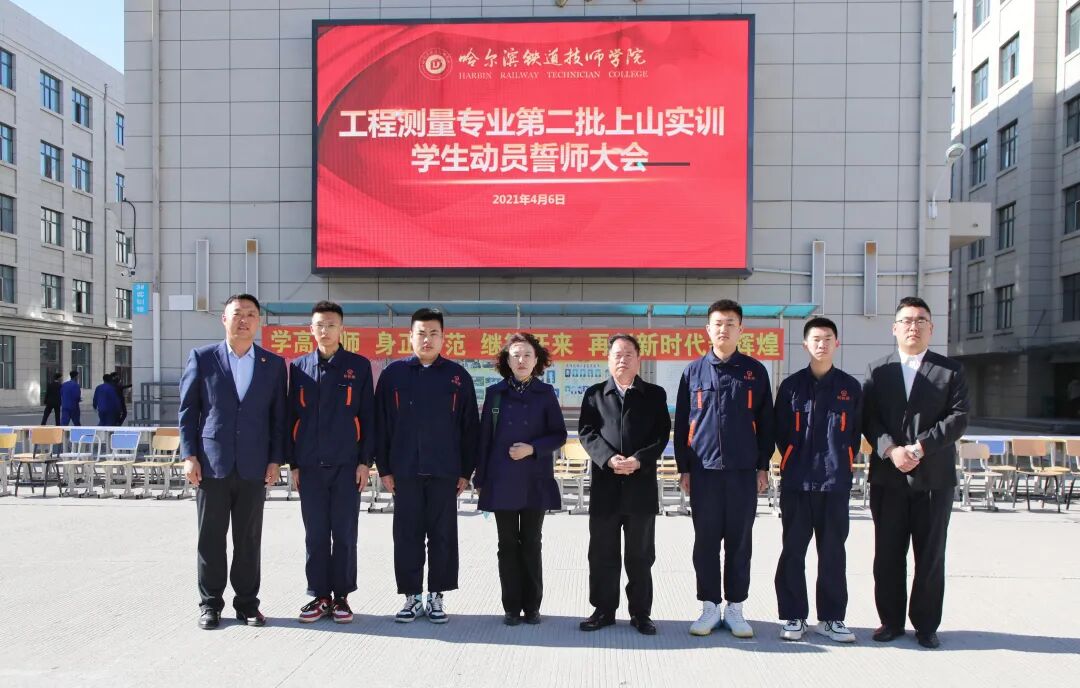 铁工系学工主任宋涛主持仪式,教务处长田海林、测量实训主任崔海洋以及实习指导教师参加了该仪式。出发前在学校操场举行了誓师大会。实训指导教师代表王鑫做了表态性发言,学生代表做发言。