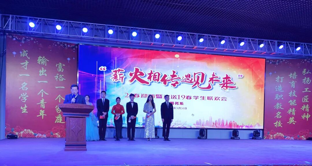 桃李满天下,雨露润春华。晚会接近尾声之际,19春安检一班学生上台为服务系徐健主任送上一面锦旗并深鞠一躬,感谢徐主任对服务系学生的辛勤付出和严格管理,让他们顺利地走上了工作岗位。在这里不仅学到了扎实的技术,更学会了待人接物,做诚实守信的事、做靠谱的人。